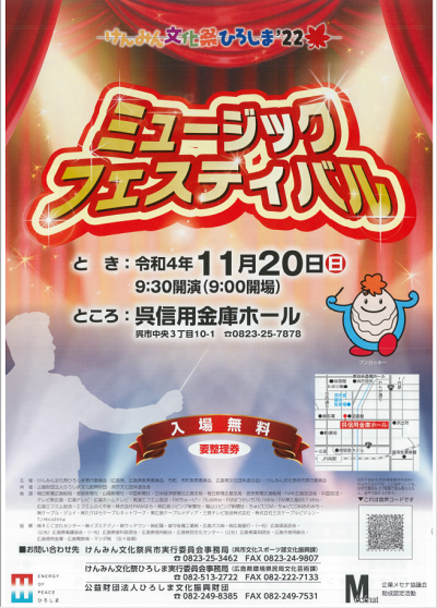 洋楽とは 、「けんみん文化祭ひろしま」では、様々な楽器による合奏を意味します。