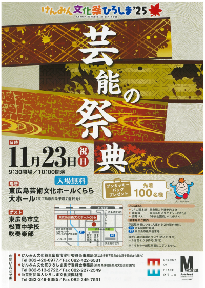 洋楽とは 、「けんみん文化祭ひろしま」では、様々な楽器による合奏を意味します。